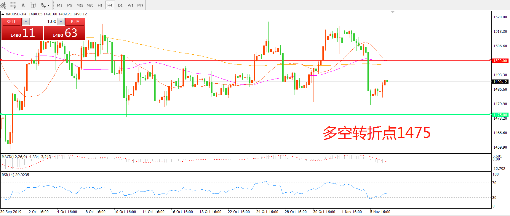 多空转折点:1475.00