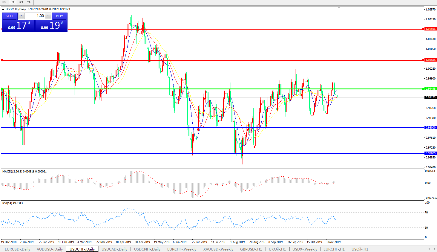 美元兑瑞郎USDCHF 日线图:
