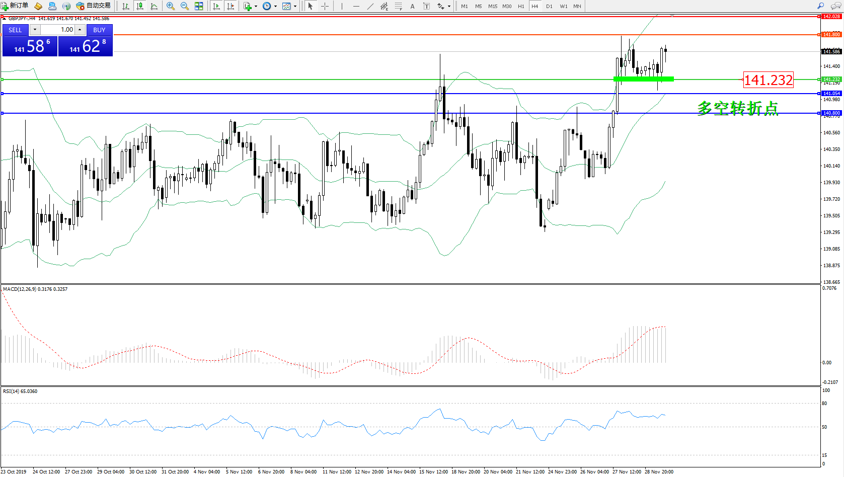 交易策略:141.232上方看涨,目标141.800、142.028