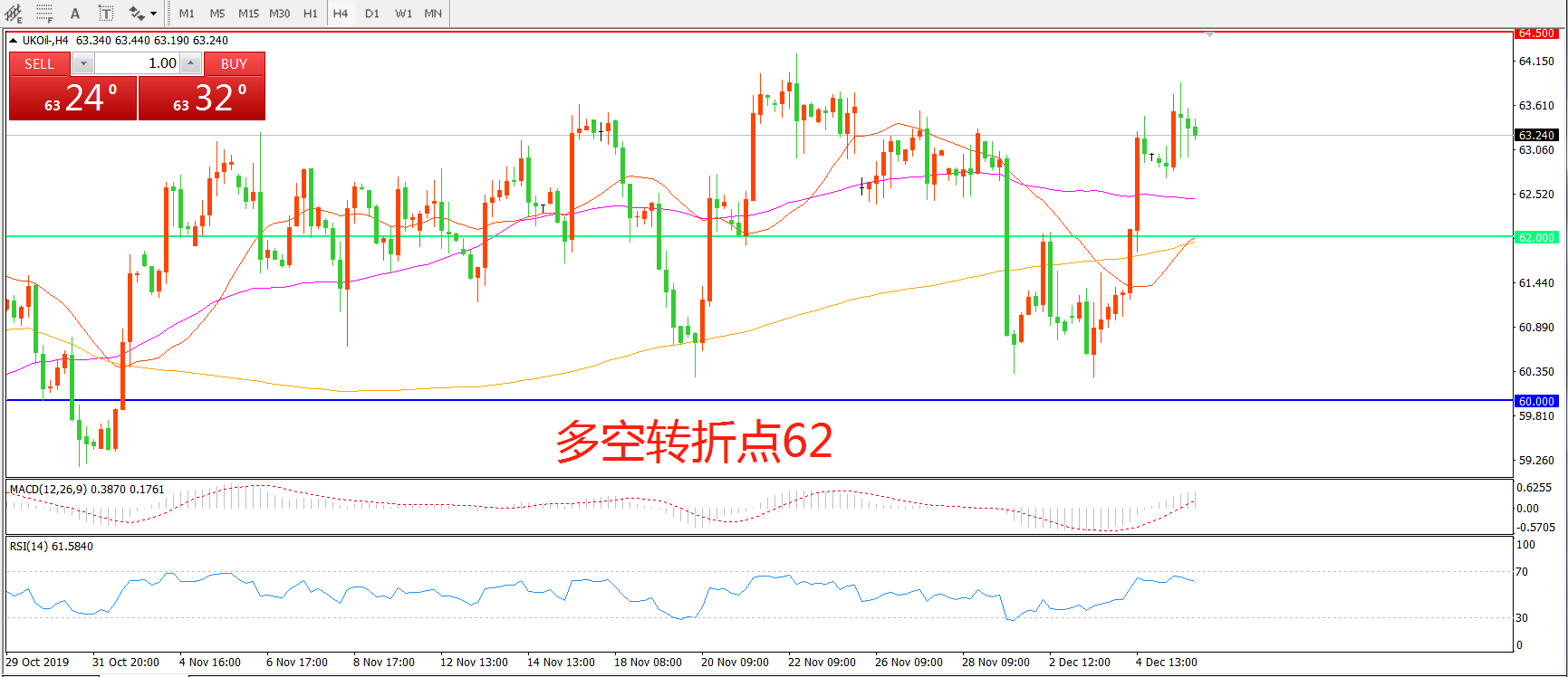 交易策略:在62.00之上看涨,目标64.50     66.00