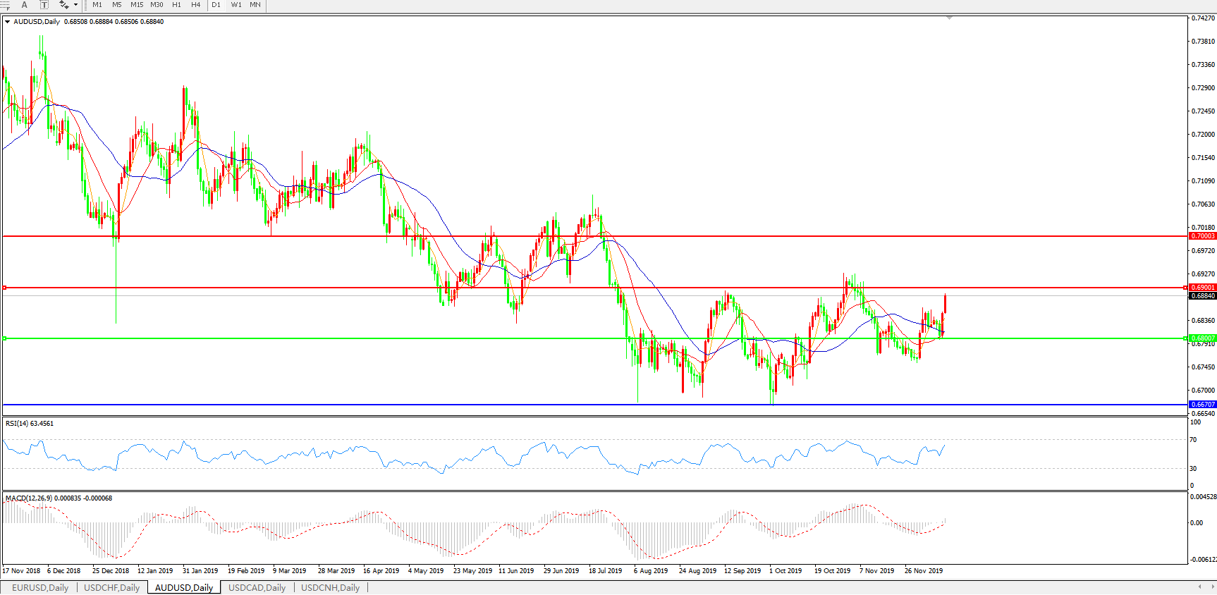 澳元兑美元AUDUSD    日线图: