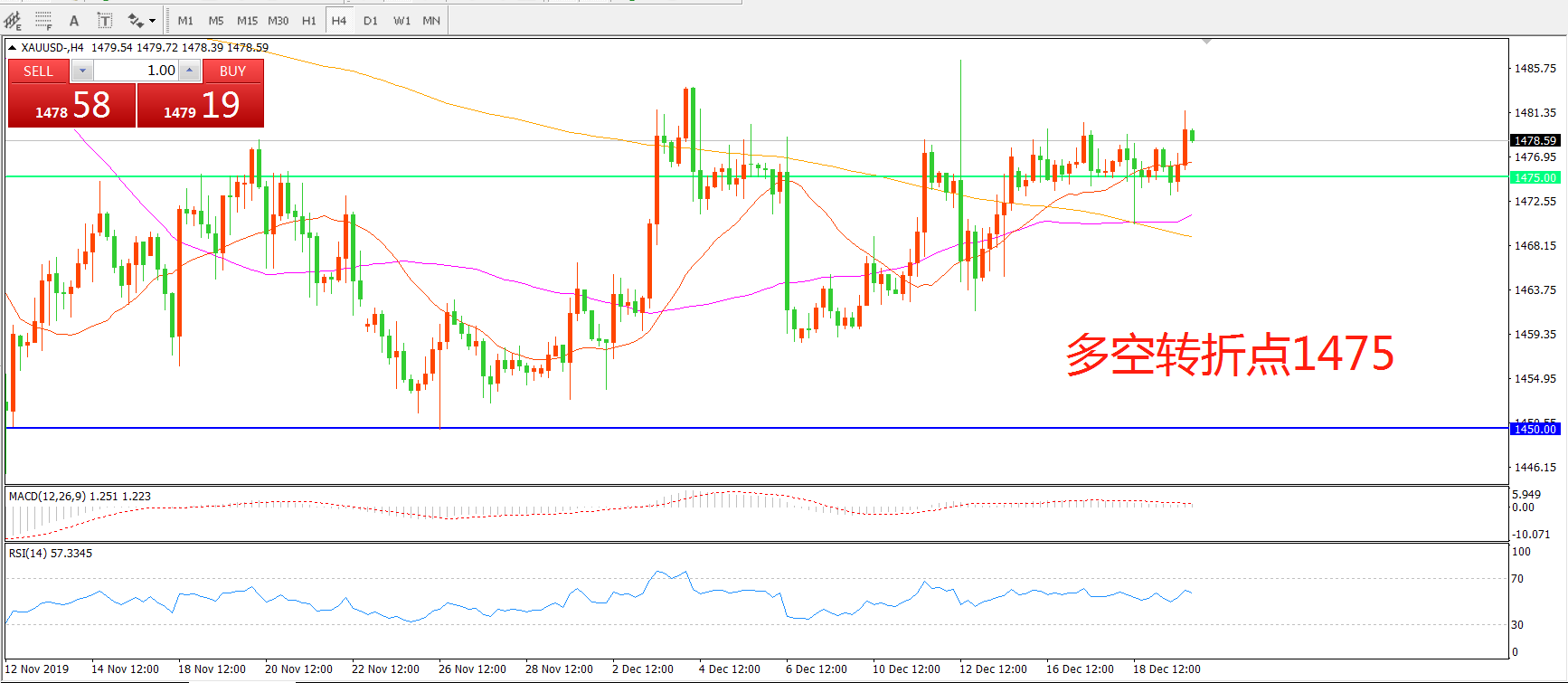 多空转折点:1475.00
