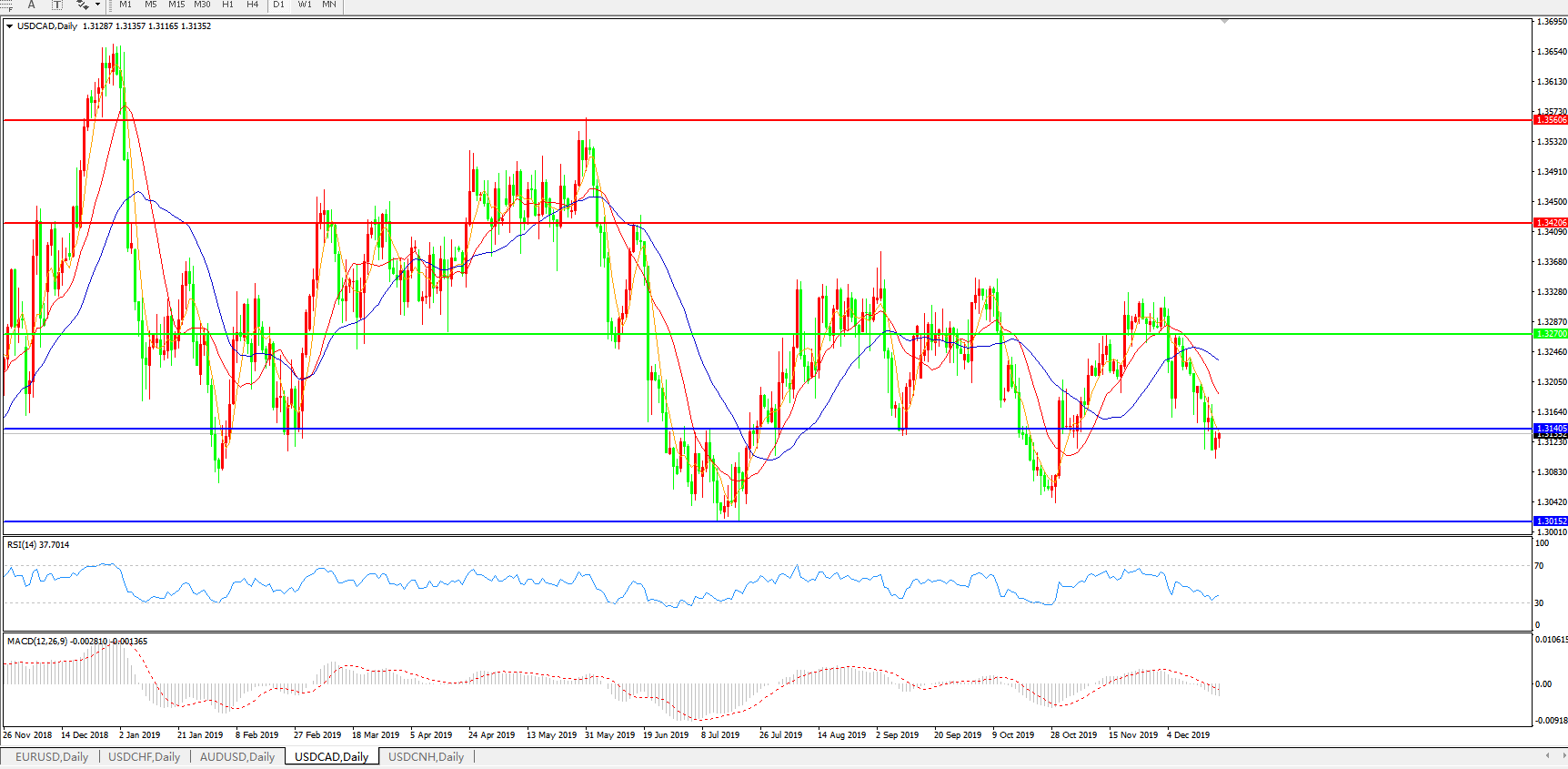 美元兑加元USDCAD 日线图:
