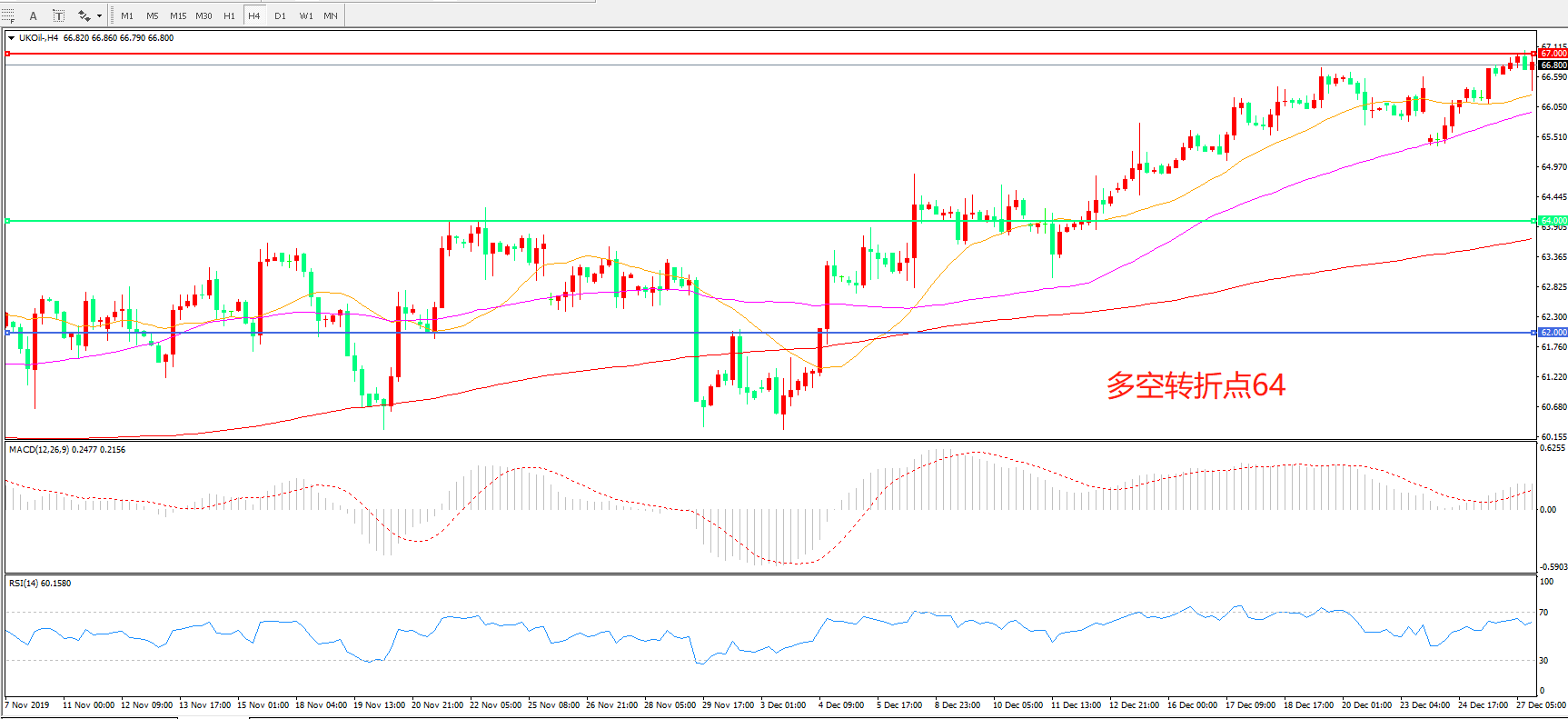 交易策略:在64.00之上看涨,目标67.00 69.50