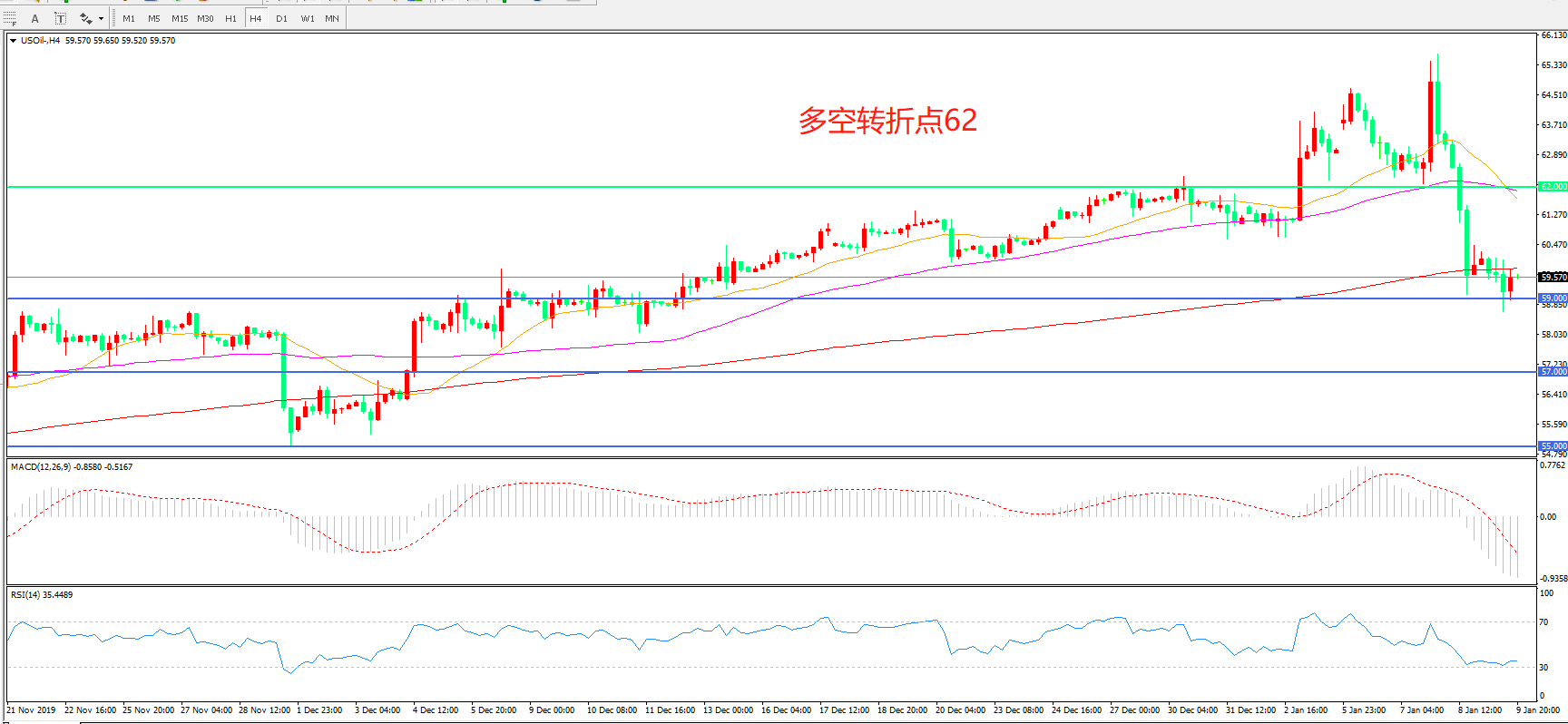 交易策略: 在62.00之下看跌,目标59.00        57.00