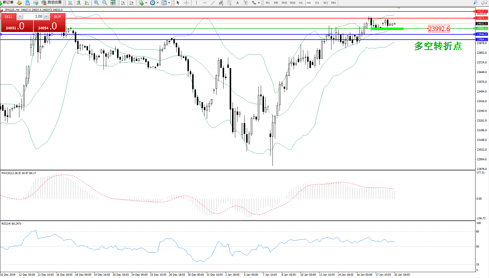 日经225指数120日(周一)收盘上涨43.24点,涨幅0.18%,报24084.50点。日本央行本周或选择继续维稳;调查显示,受访的42位经济学家都预测,日本央行本周将维持利率,资产购买及其政策指导不变;人们将注意力集中在央行的季度预测以及对经济复苏信心增强的任何迹象上,这也使得未来采取宽松政策的可能性降低。受到首相安倍晋三上个月公布的1200亿美元刺激方案的提振,日本央行预计将在一年来首次提高经济增长预测。即使增长前景改善,人们依然普遍预计行长黑田东彦会暗示他仍然倾向于进一步放松政策。日本央行不想与美联储或欧洲央行的立场出现太大偏差,后两者均表示,风险依然很高,它们正在谨慎评估数据。要判断可能推动经济形势在2019年最后三个月发生逆转的10月份调高消费税的影响,对日本央行而言也为时过早。秋季将购物者留在家中并导致生产中断的极端天气,也使得日本央行很难通过最新统计数据来评估真实的经济状况。