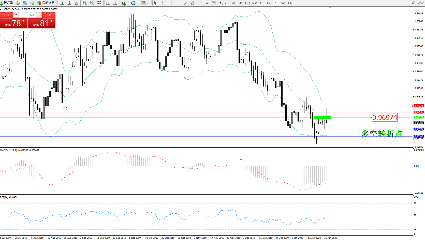 交易策略:0.96974下方看跌,目标0.96593、0.96366