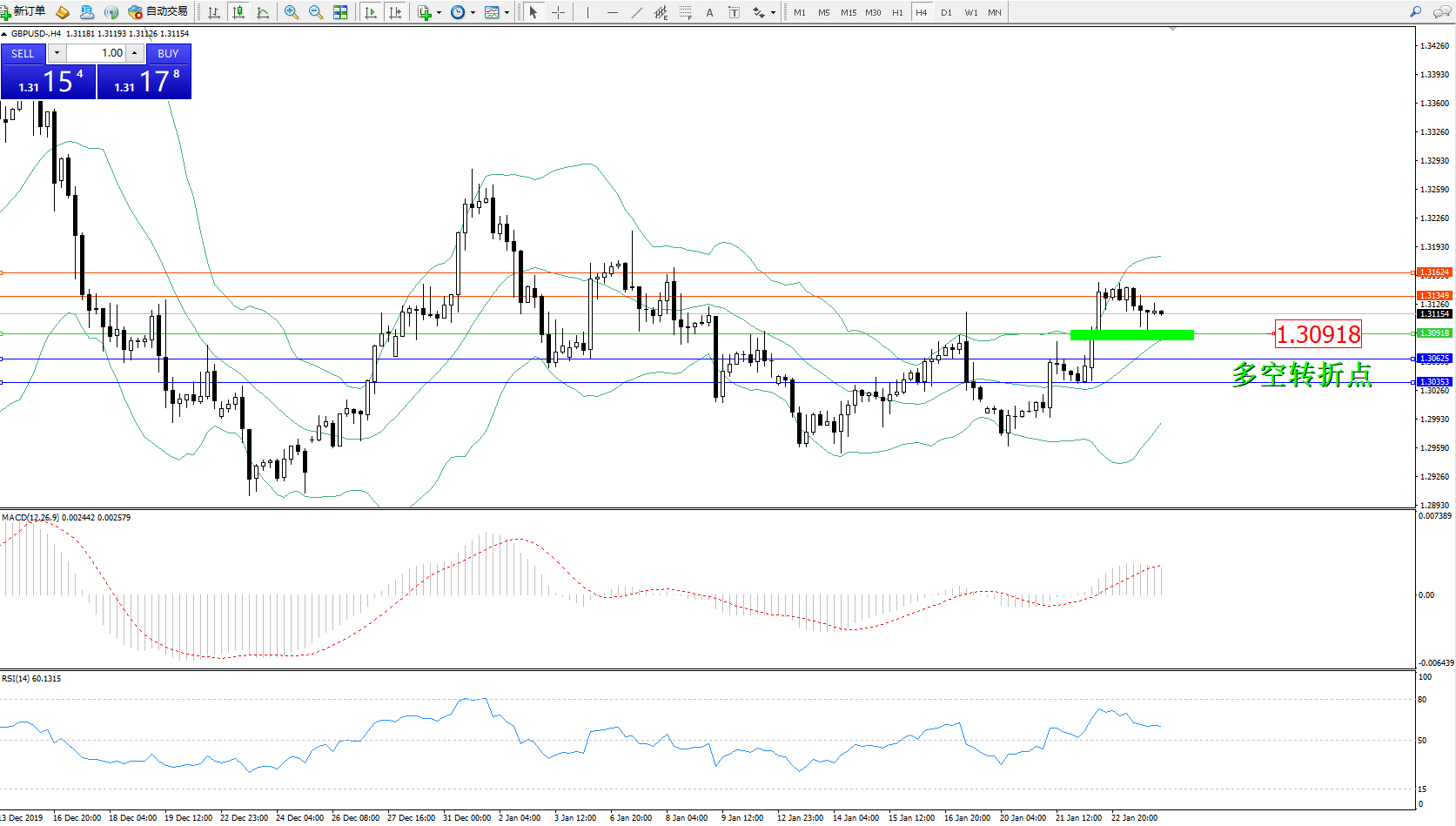 备选策略:1.30918上方看涨,目标1.31349、1.31624