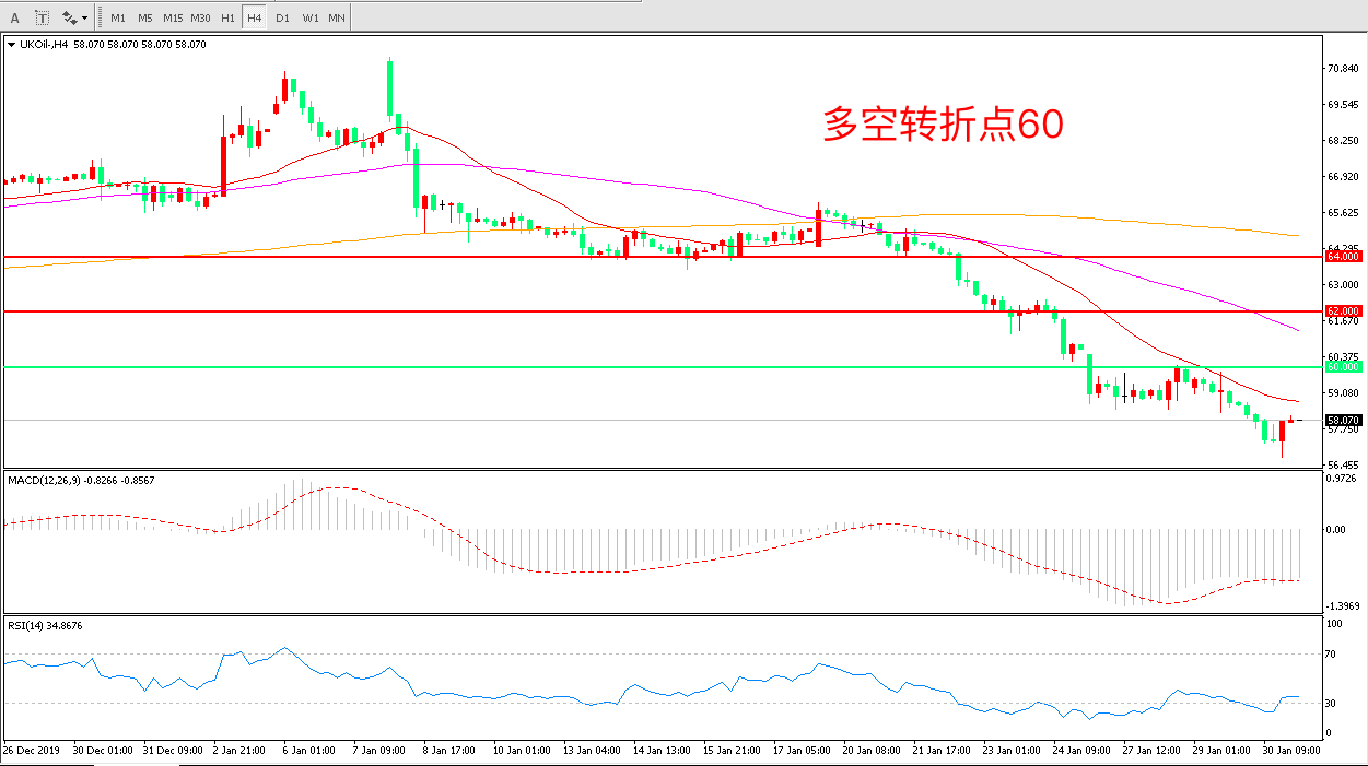 交易策略:在60.00之下看跌,目标57.00    55.00