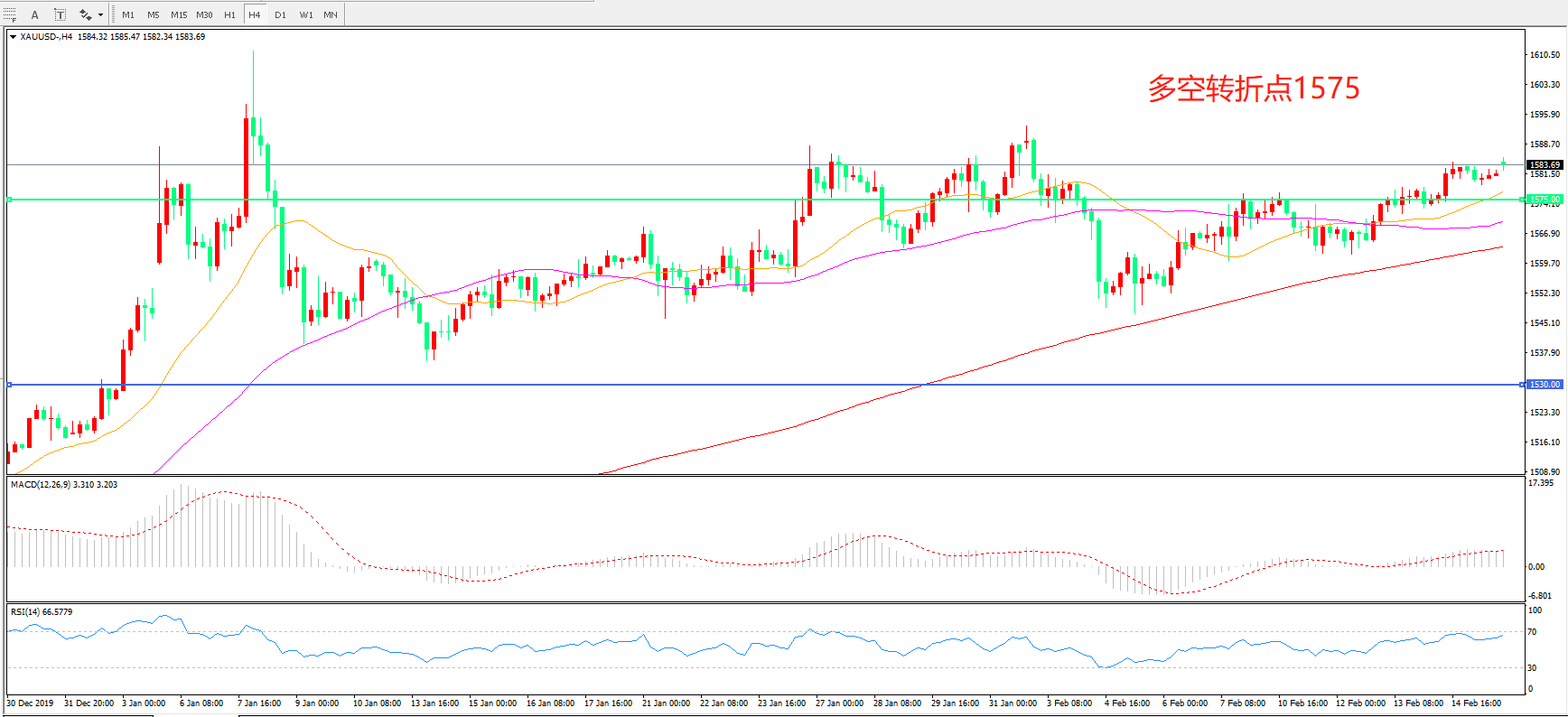 多空转折点:1575.00