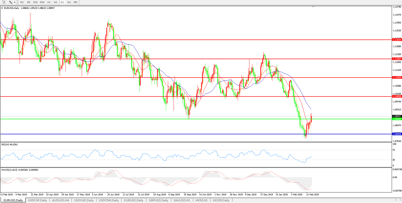 支撑位:1.0800、1.0500