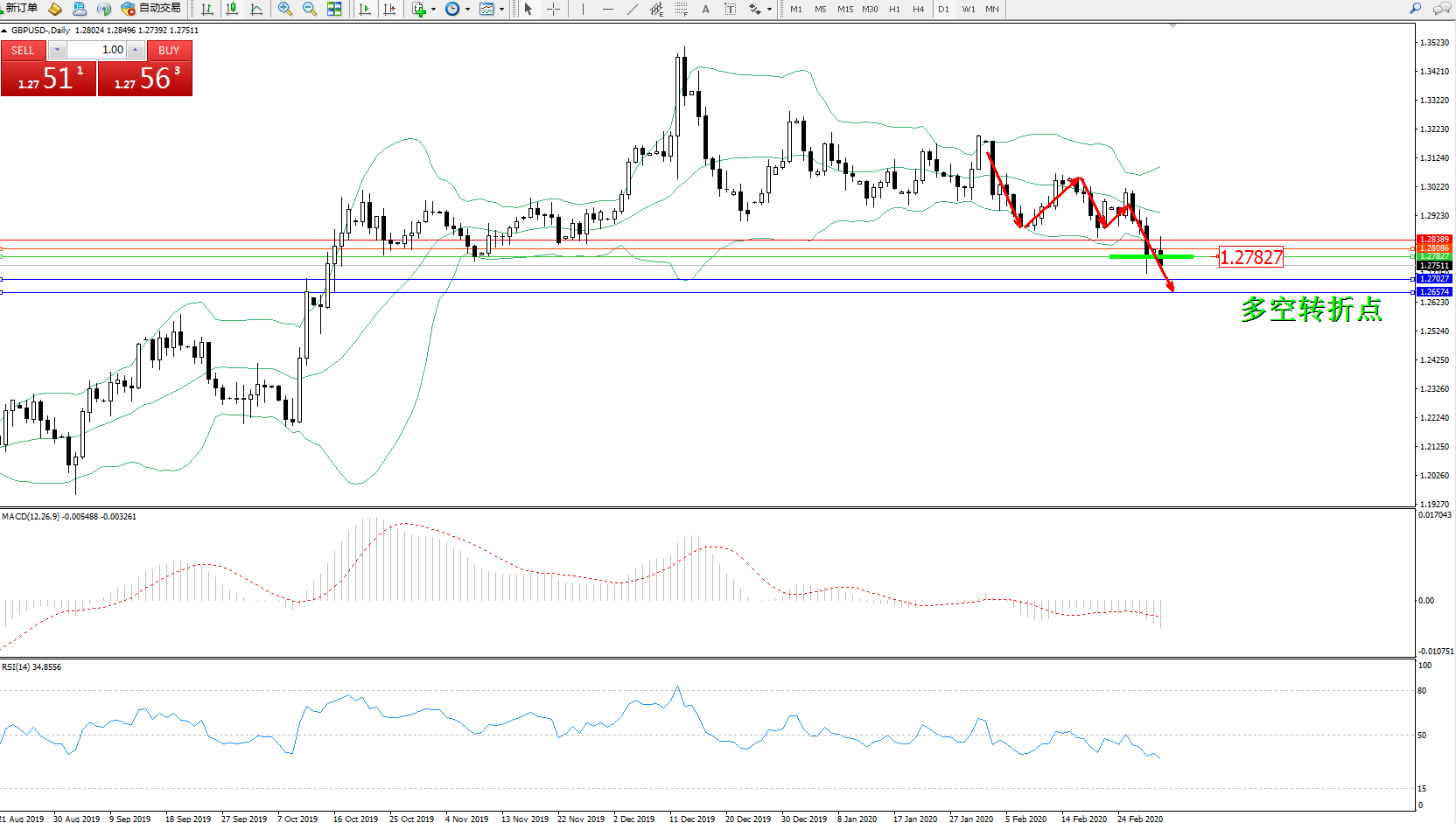 交易策略:1.27827下方看跌,目标1.270271.26574