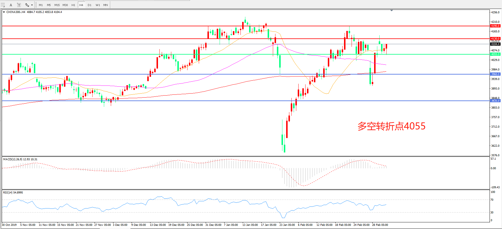 多空转折点:4055.00
