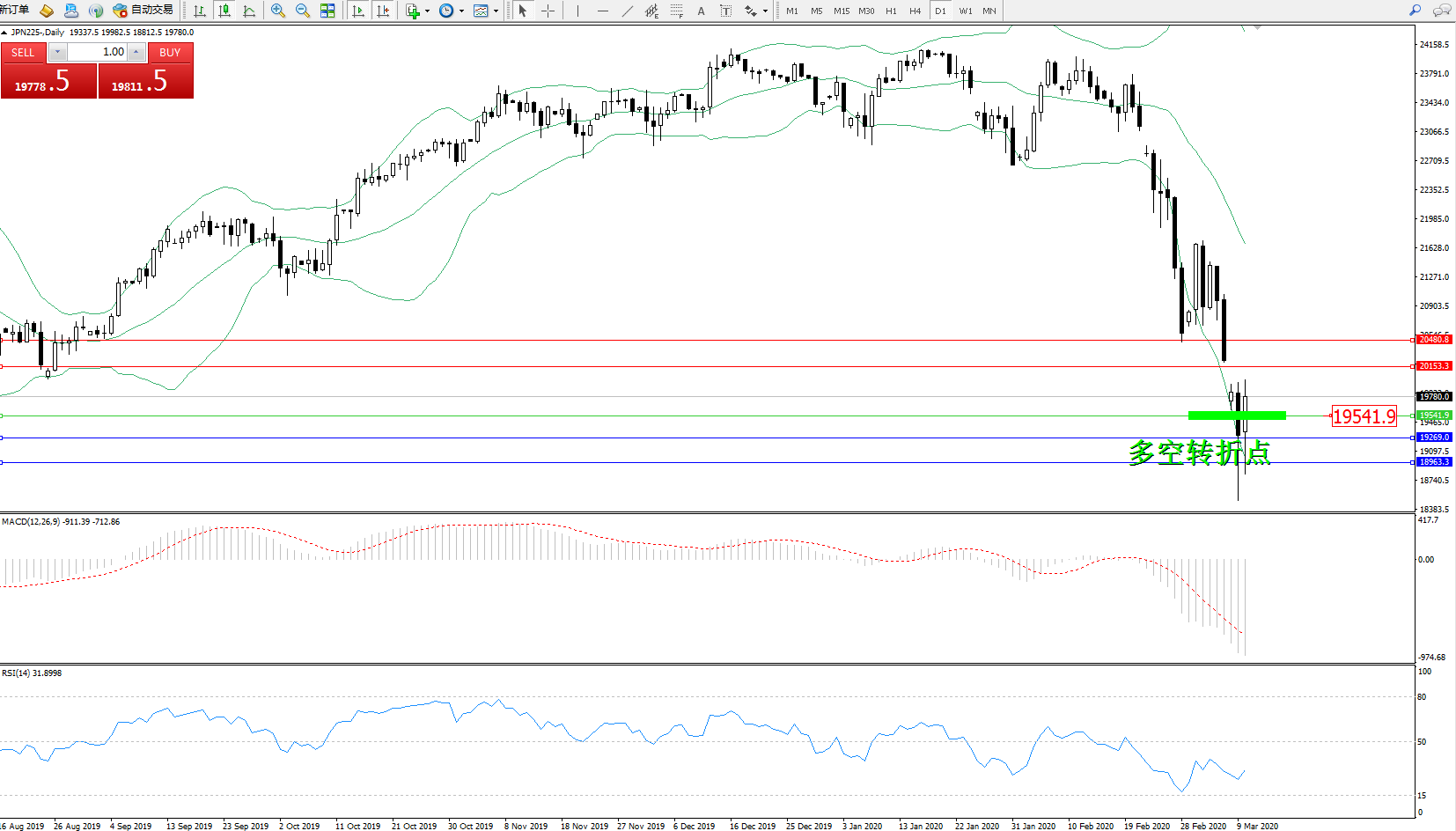 交易策略:19541上方看涨,目标20153、20480