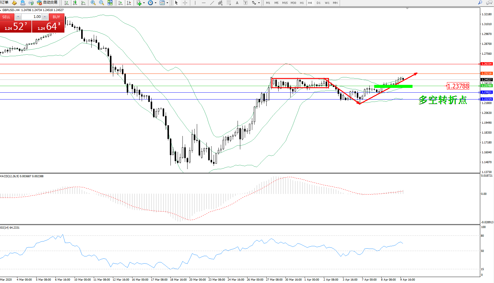 交易策略:1.23788上方看涨,目标1.252181.26334
