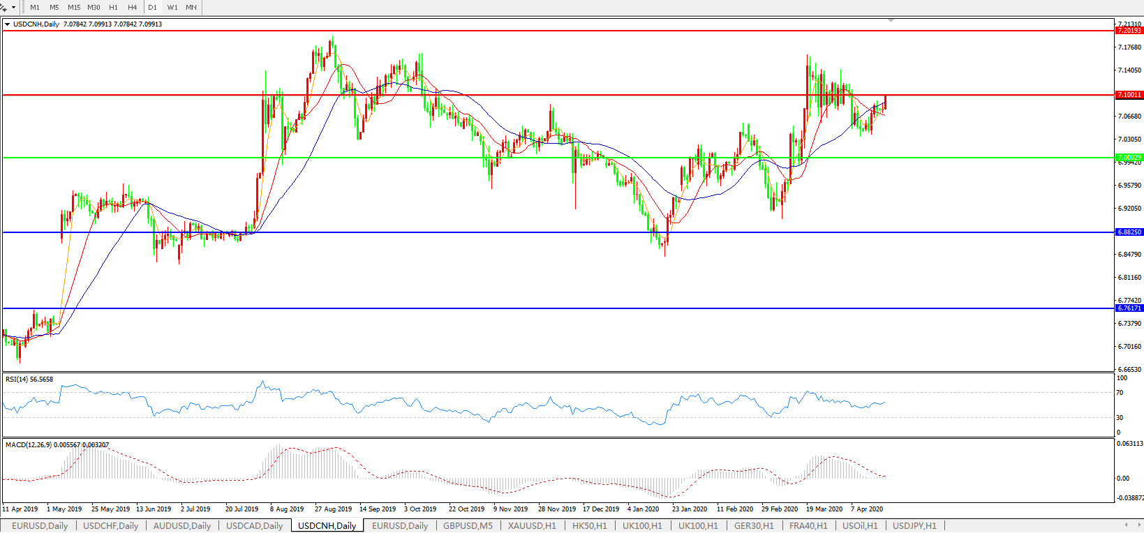 美元兑人民币USDCNH    日线图: