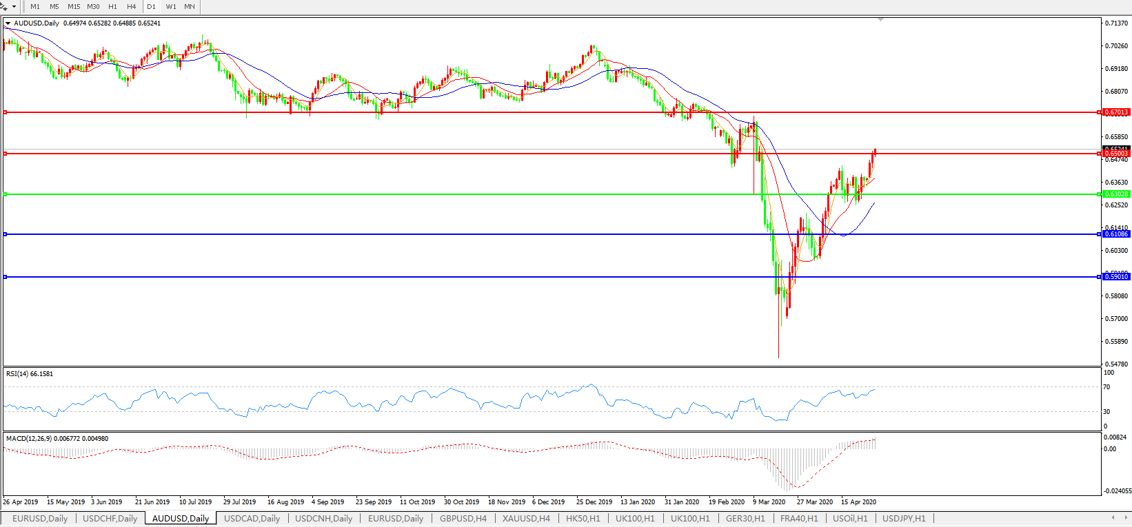 澳元兑美元AUDUSD 日线图:
