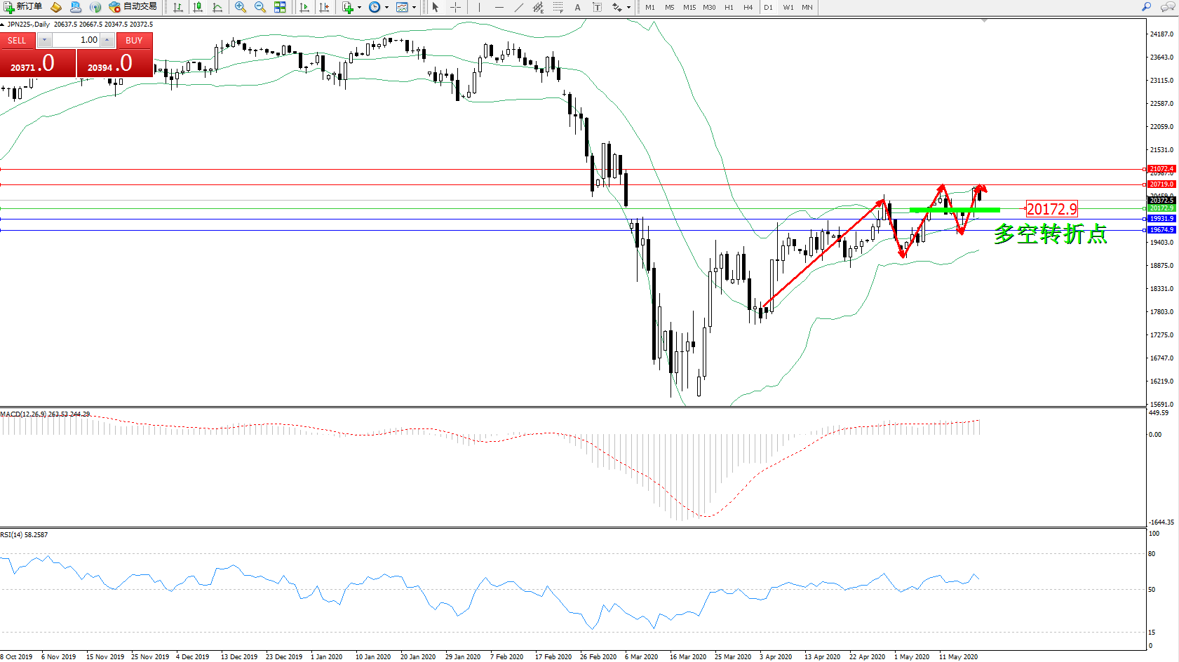 日经指数JPN225——日K线图显示: