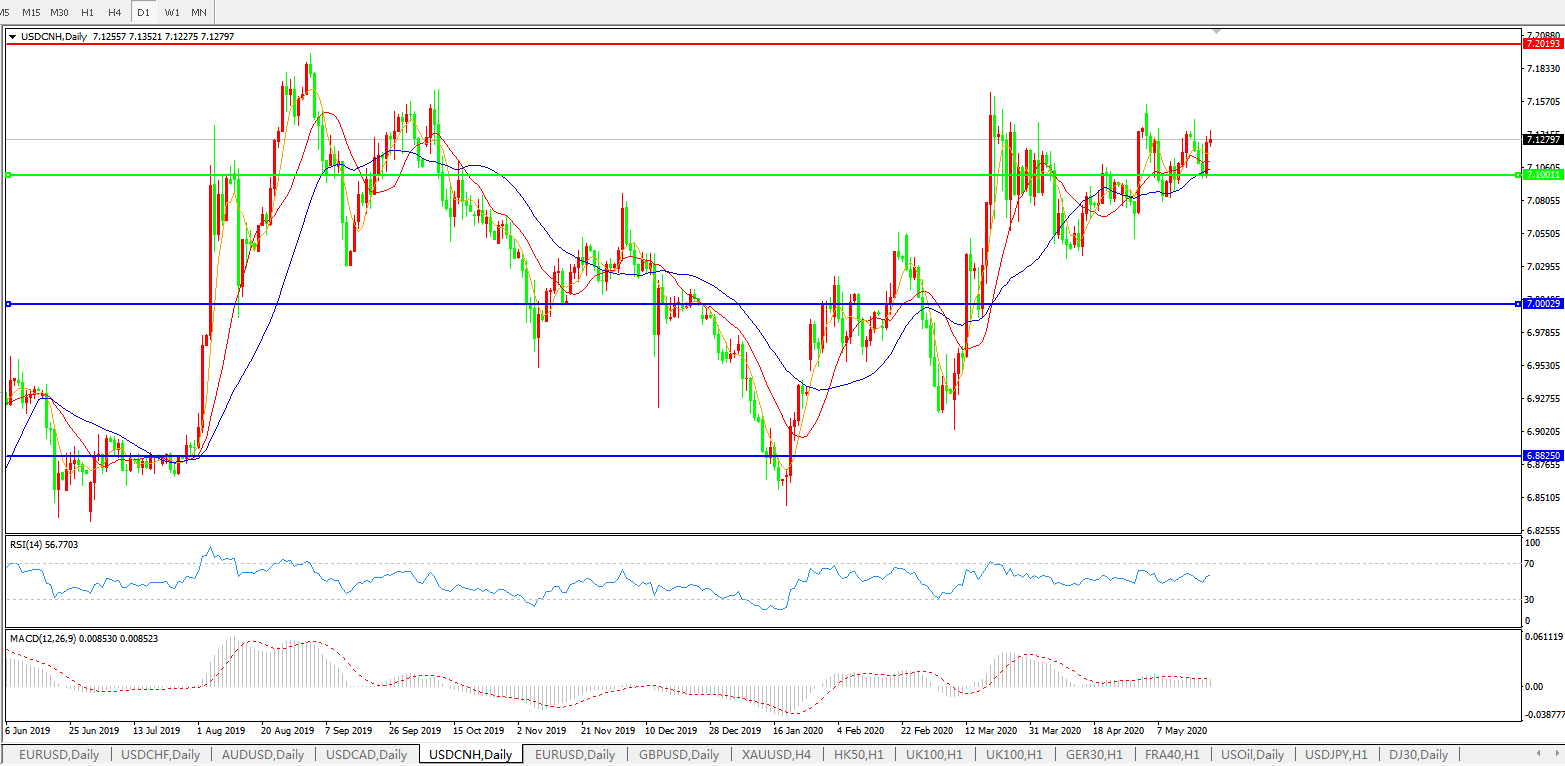 美元兑人民币USDCNH 日线图: