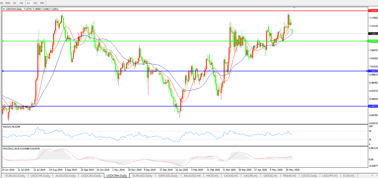 美元兑人民币USDCNH    日线图: