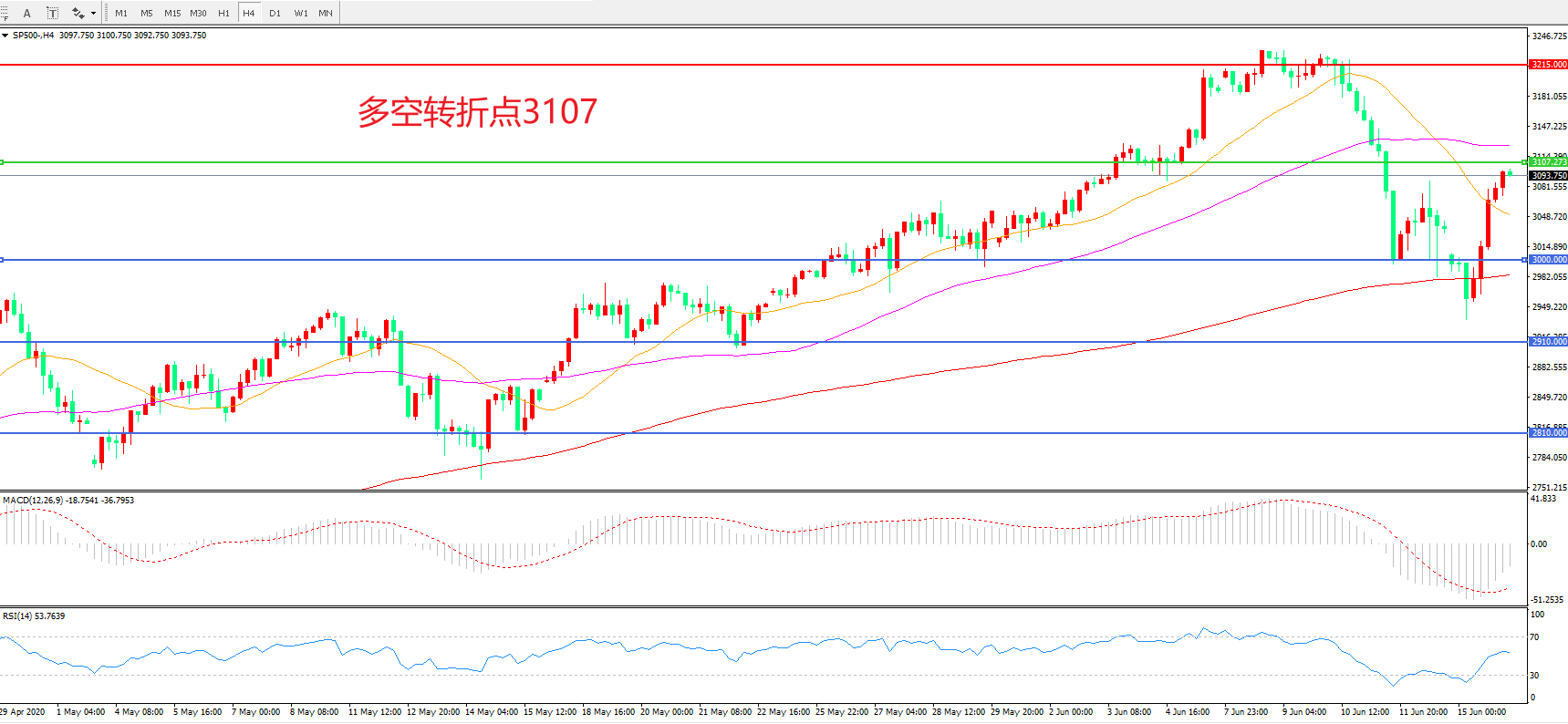 交易策略:在3107.00之下看跌,目标3000.00         2910.00