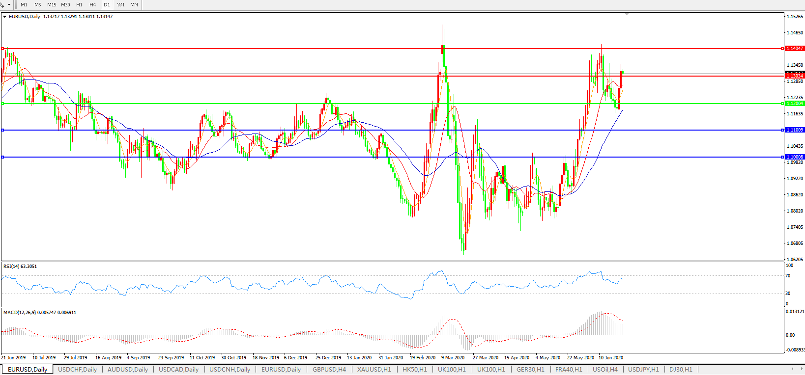 欧元兑美元EURUSD   日线图:
