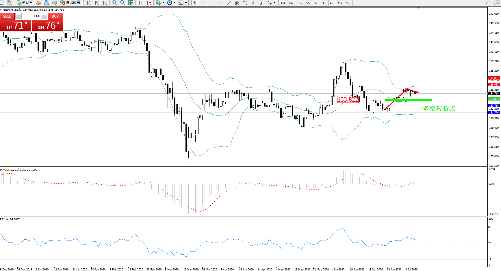 交易策略:133.822上方看涨,目标136.057、137.081