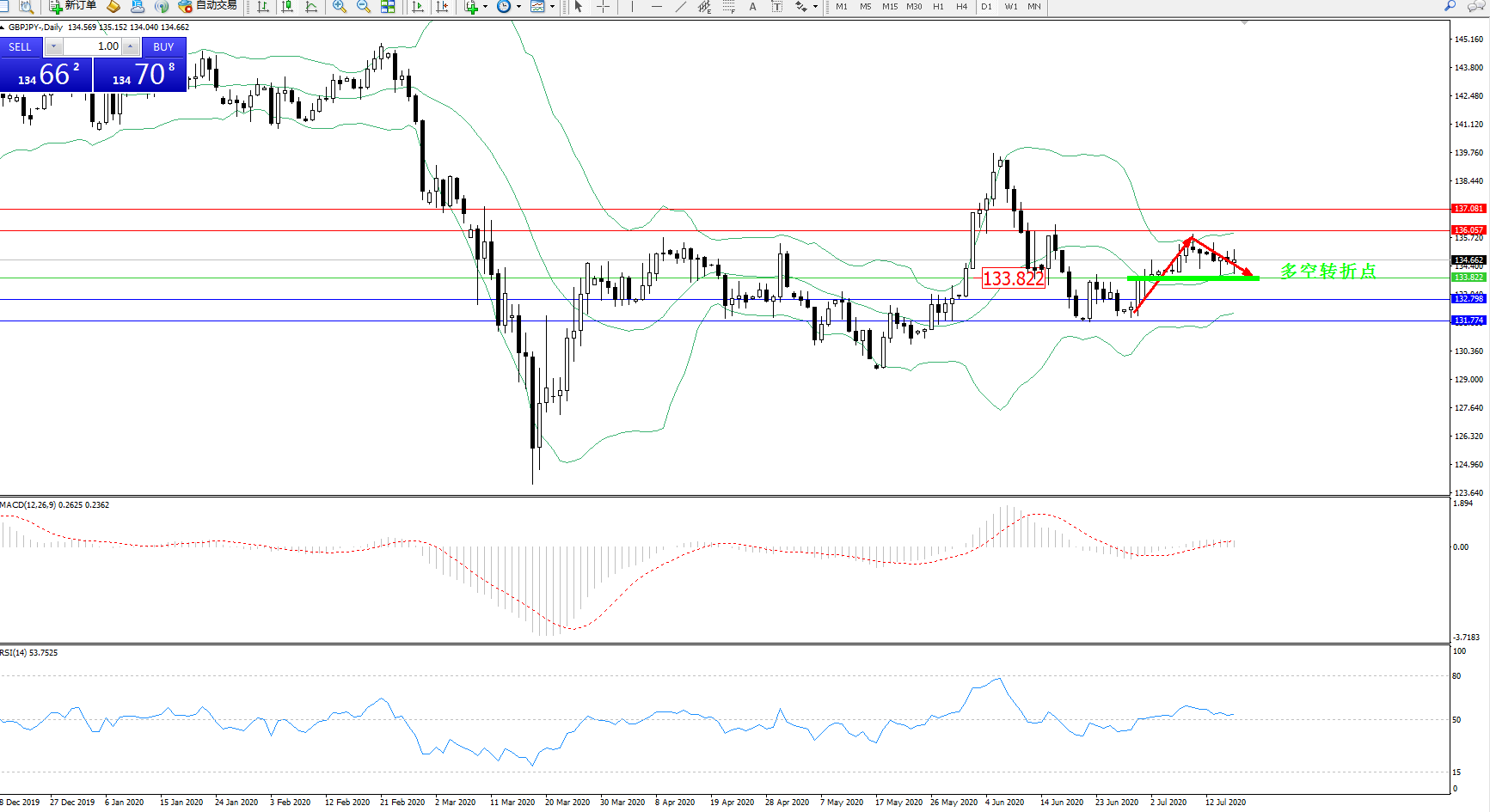 交易策略:133.822上方看涨,目标136.057137.081