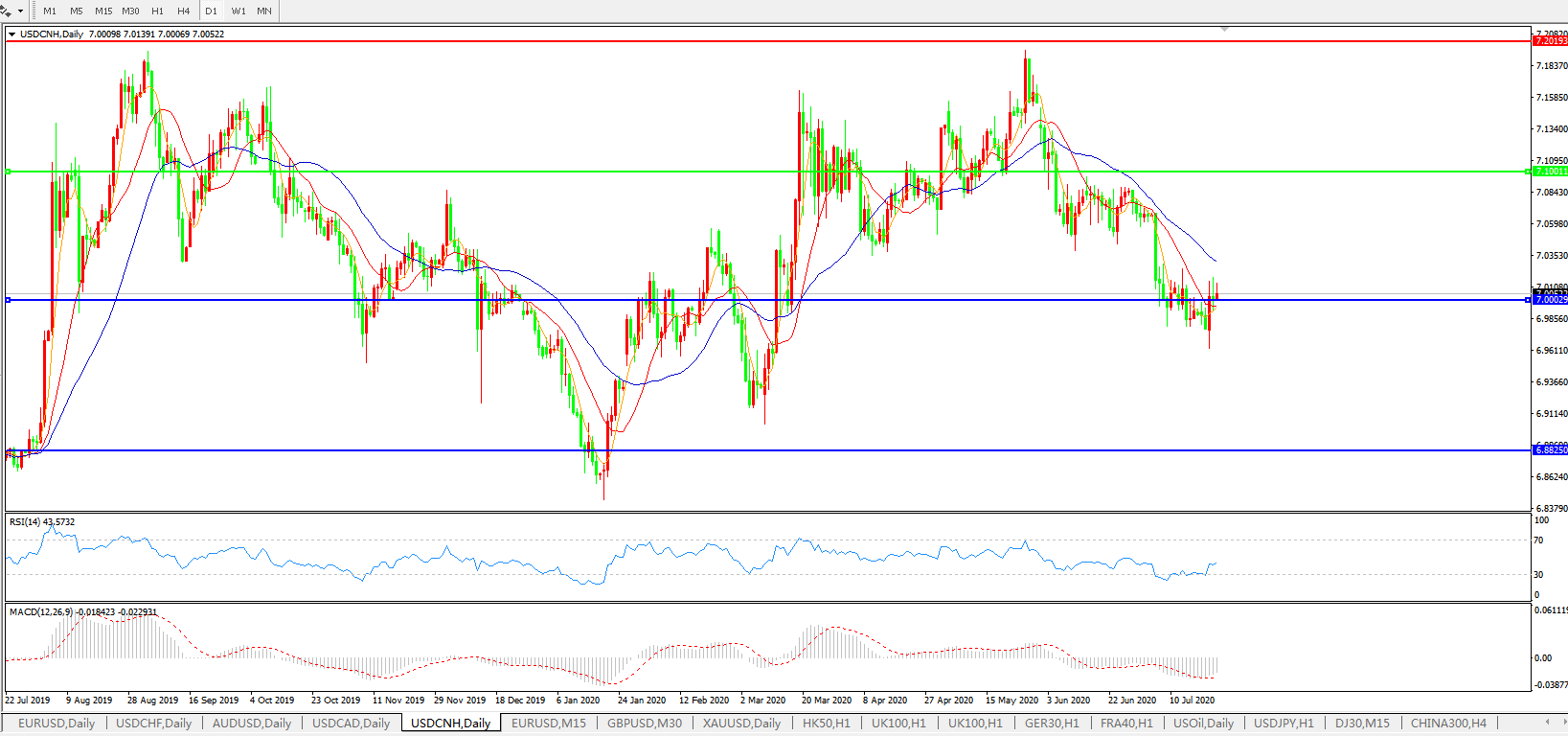 美元兑人民币USDCNH    日线图: