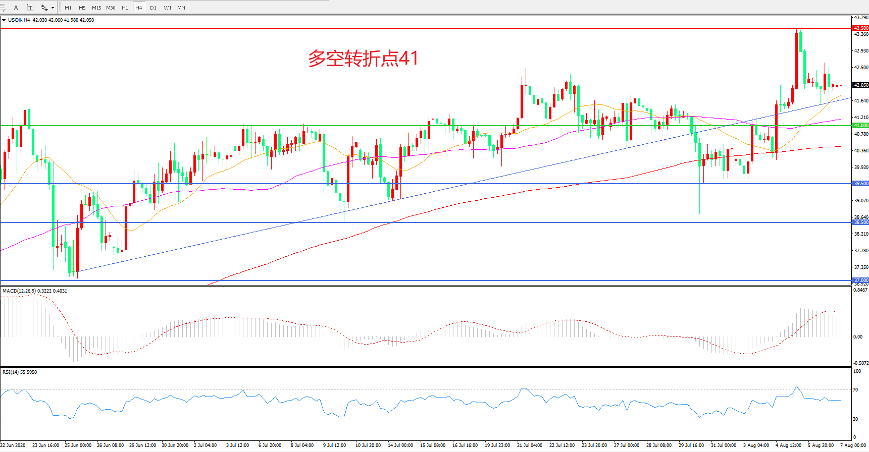 交易策略:在41.00之上看涨,目标43.50         46.00