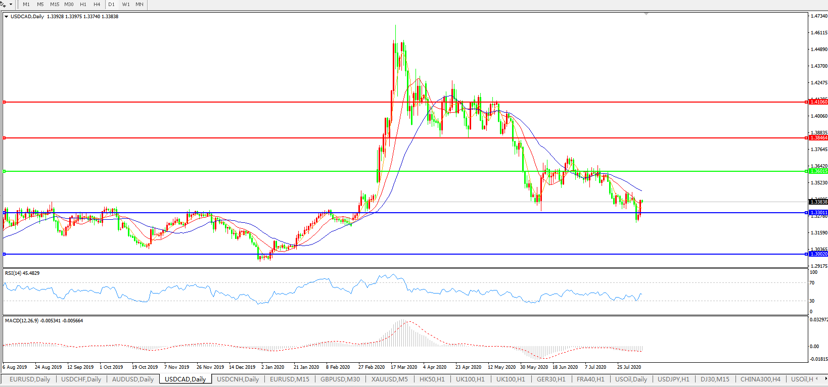 美元兑加元USDCAD 日线图: