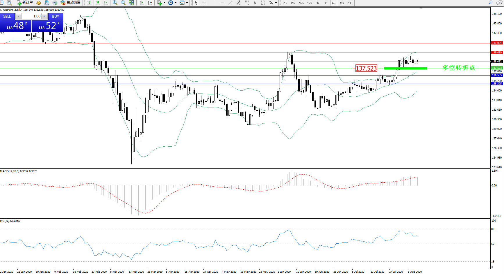 交易策略:137.523上方看涨,目标139.680、141.024