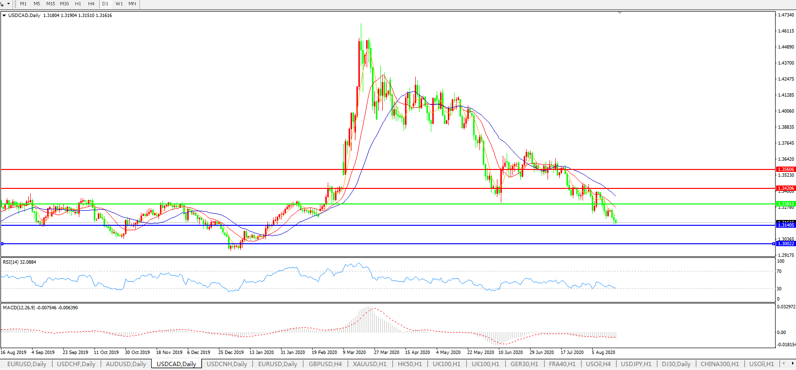 美元兑加元USDCAD    日线图: