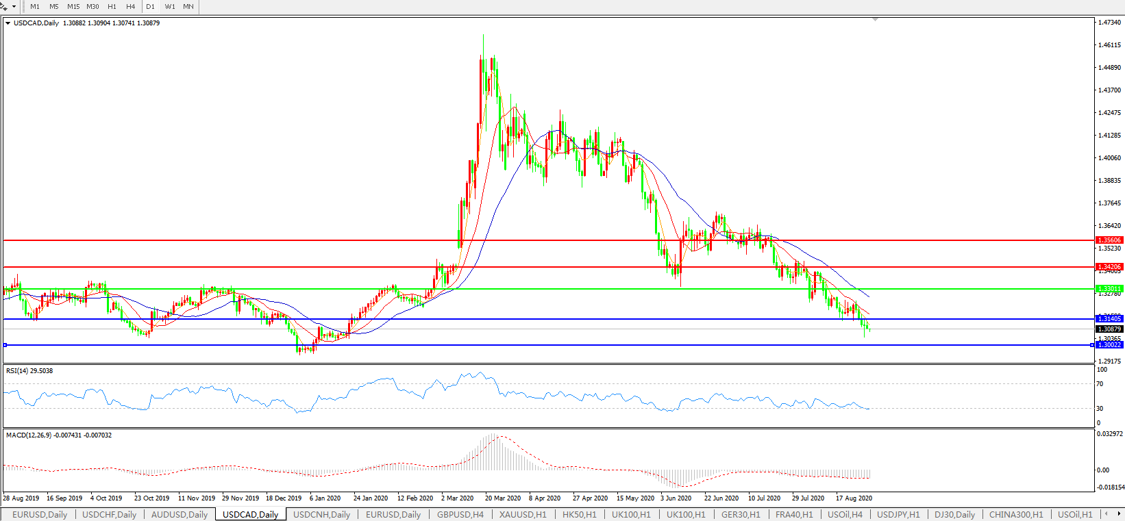 美元兑加元USDCAD 日线图: