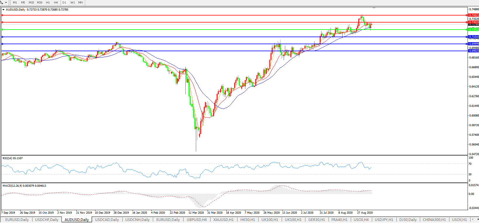 交易策略:0.7200上方看涨,目标0.7300、0.7400