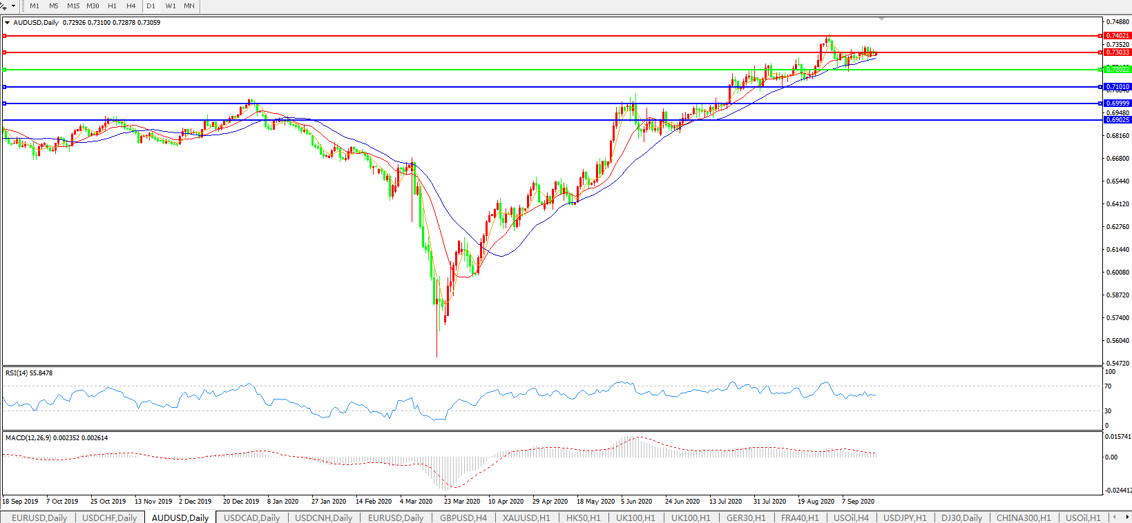 澳元兑美元AUDUSD 日线图: