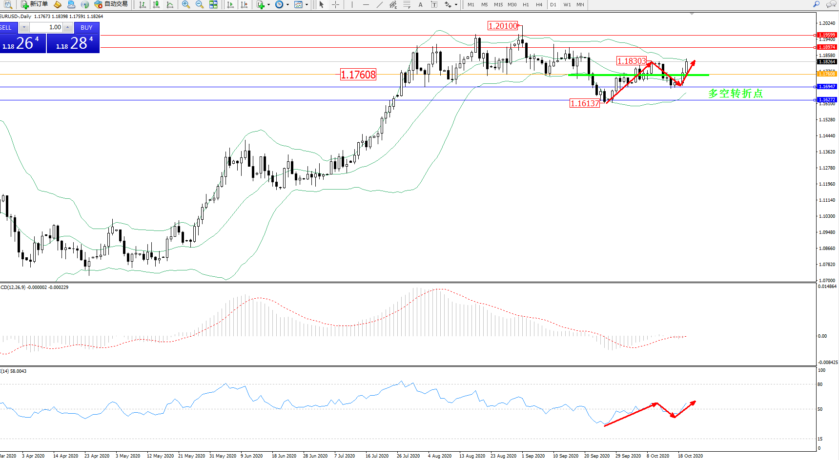 交易策略:1.17608上方看涨,目标1.18974、1.19599