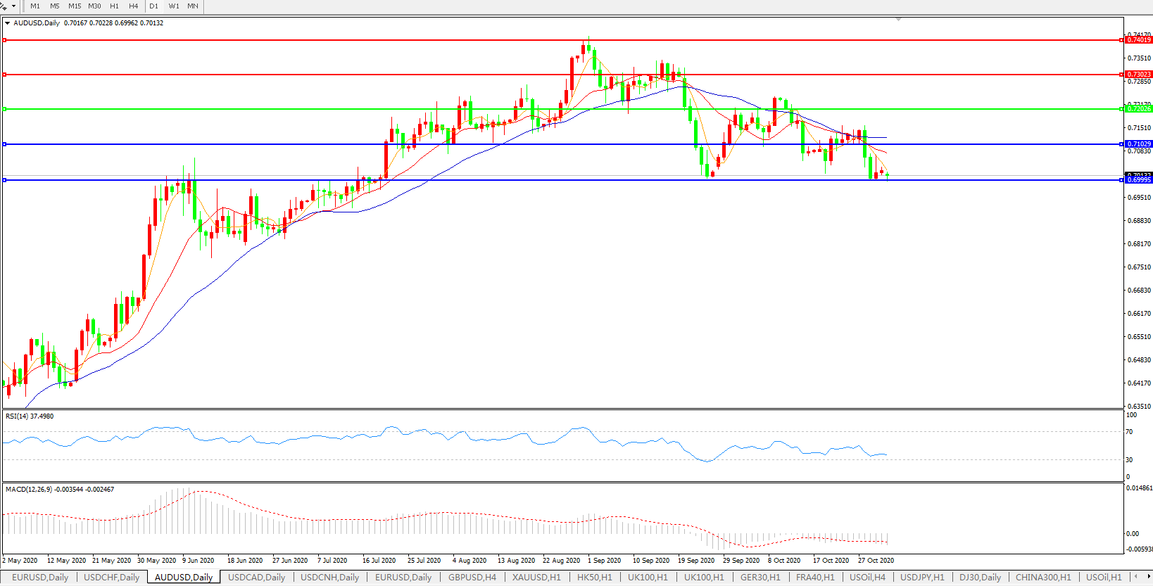 澳元兑美元AUDUSD 日线图: