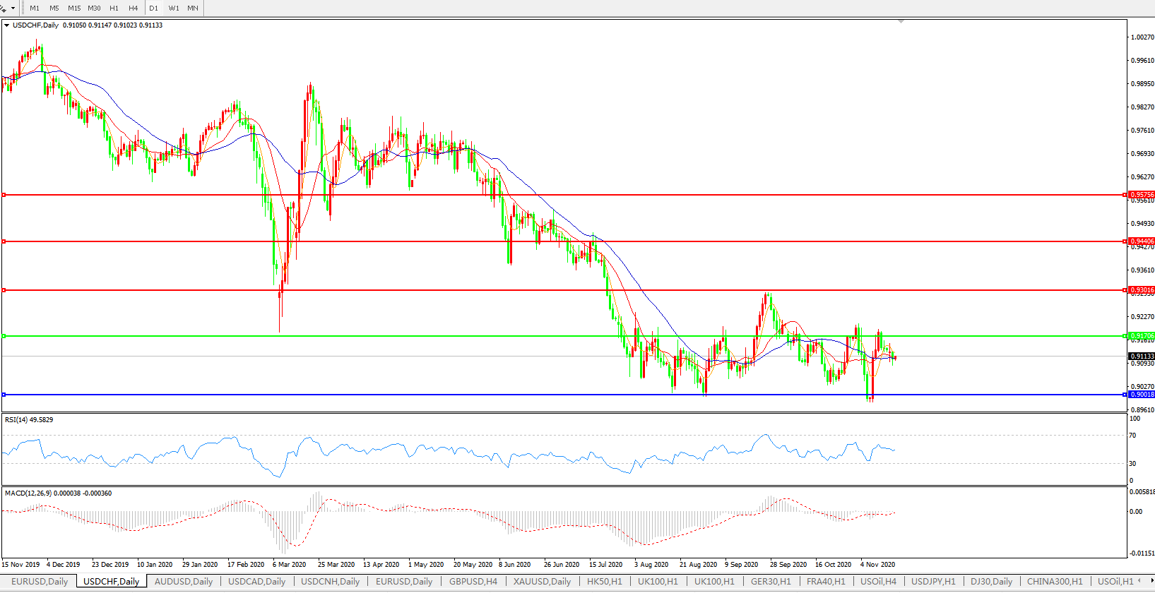 美元兑瑞郎USDCHF 日线图:
