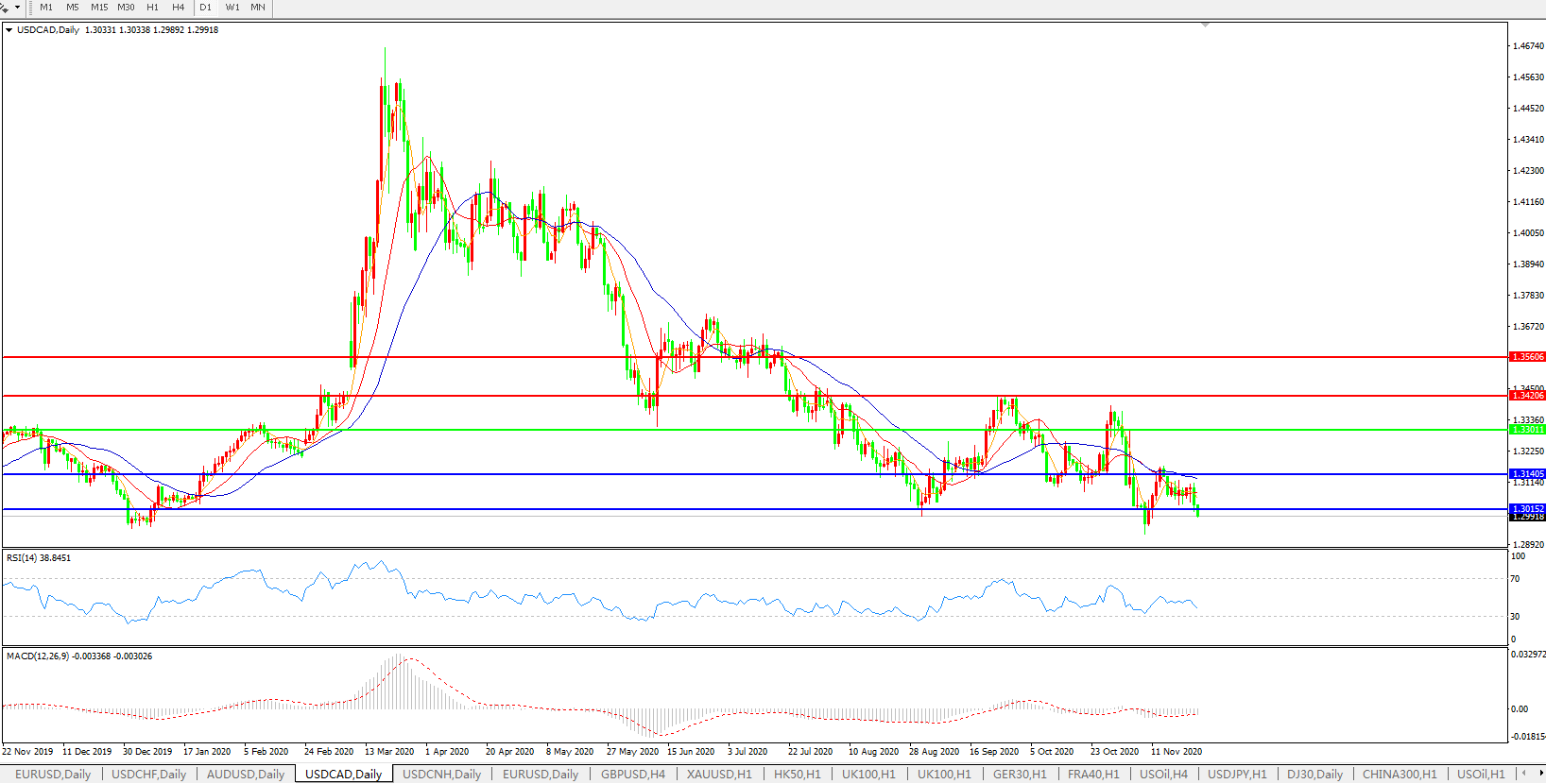 美元兑加元USDCAD 日线图: