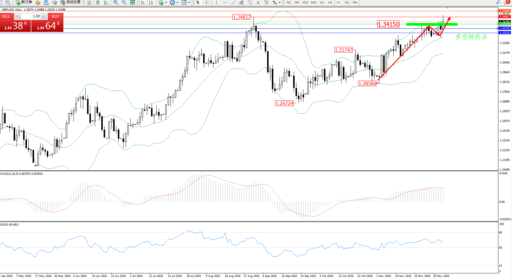 多空转折点:1.34150
