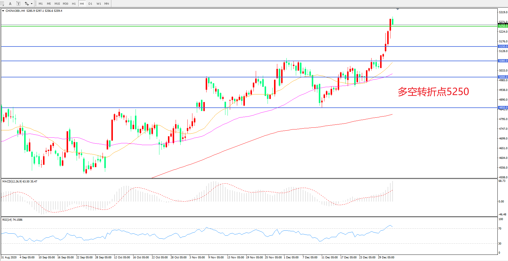 多空转折点:5250.00