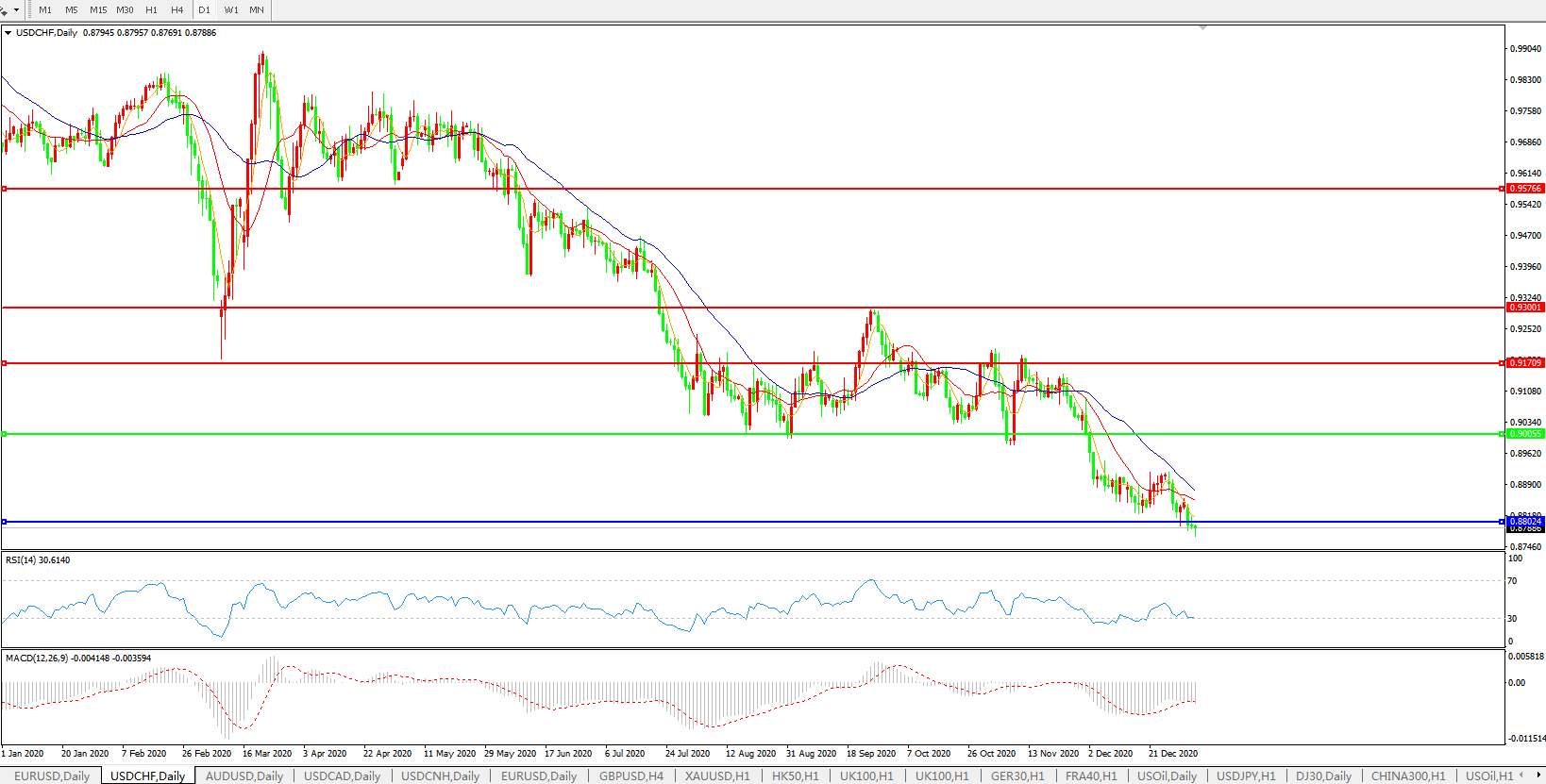 美元兑瑞郎USDCHF 日线图: