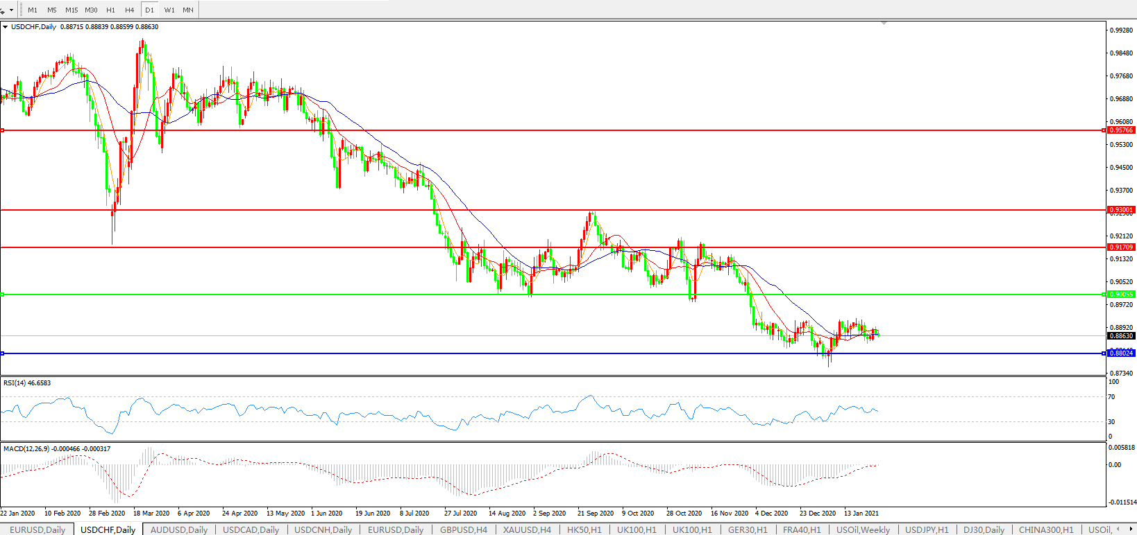 美元兑瑞郎USDCHF 日线图: