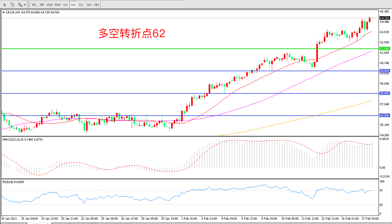 交易策略: 在62.00之上看涨,目标65.00 68.00