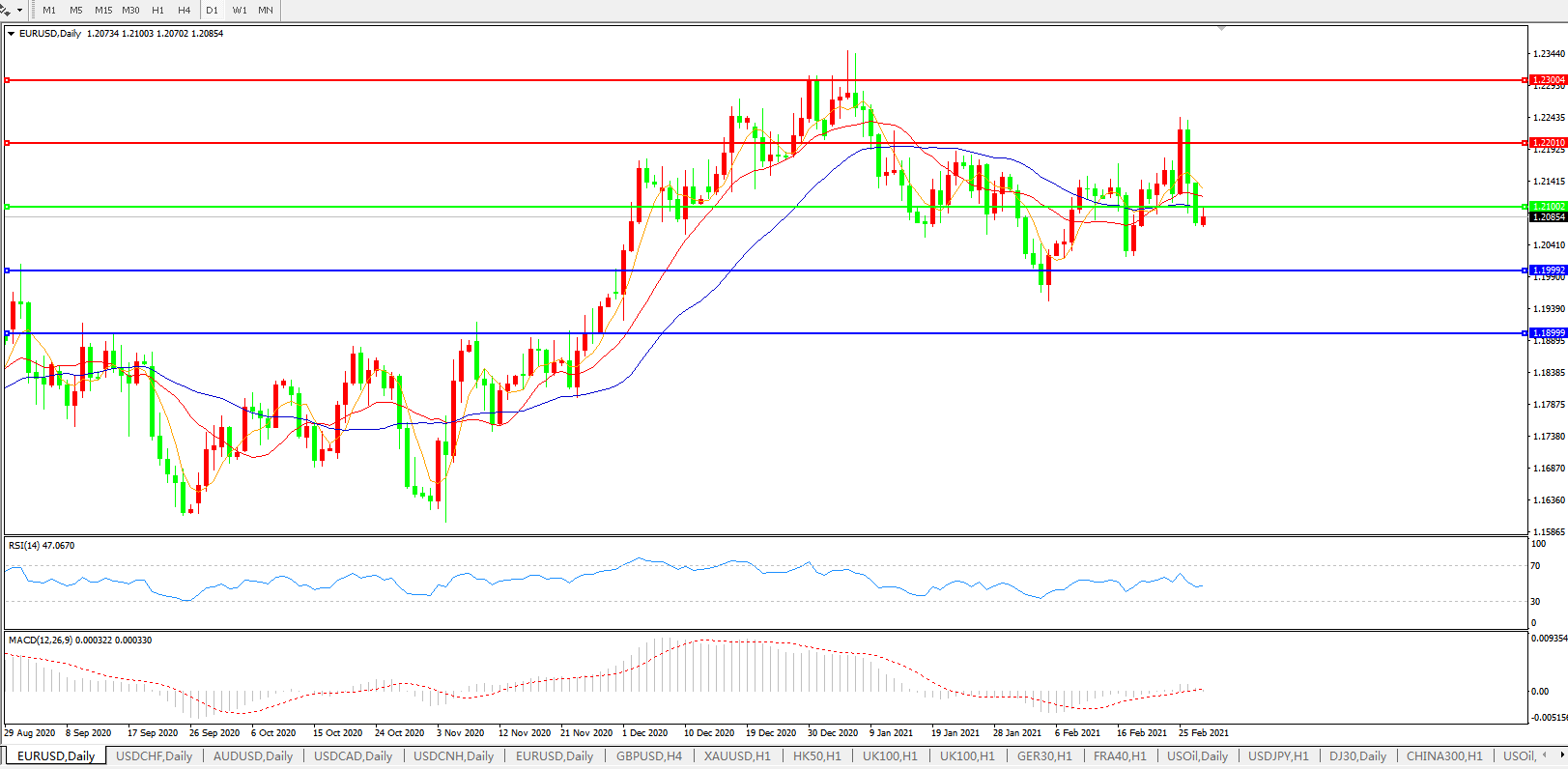 欧元兑美元EURUSD   日线图: