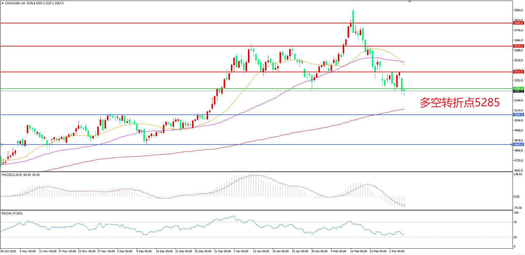 多空转折点:5285.00