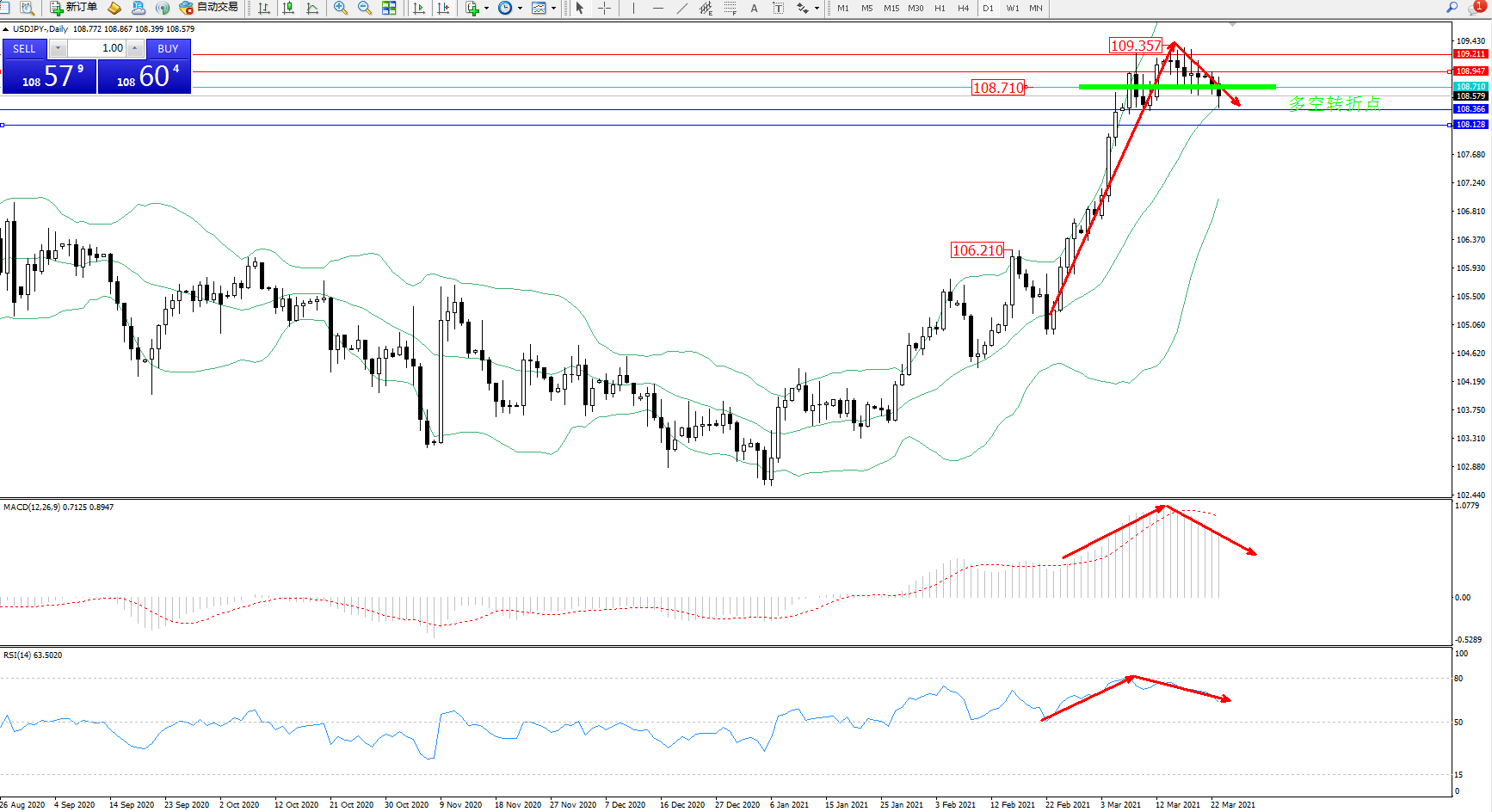 多空转折点:108.710