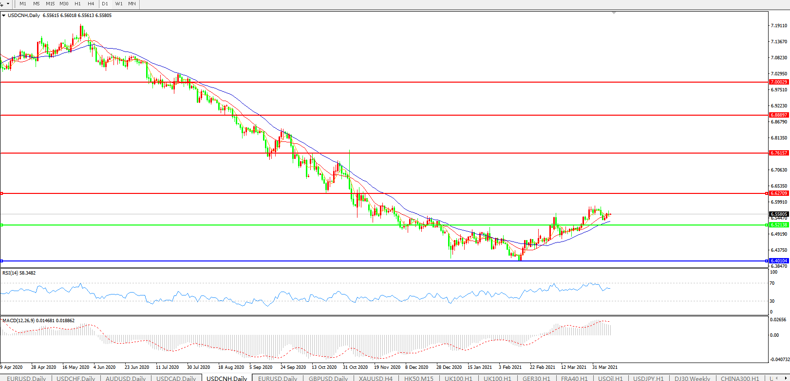 美元兑人民币USDCNH    日线图: