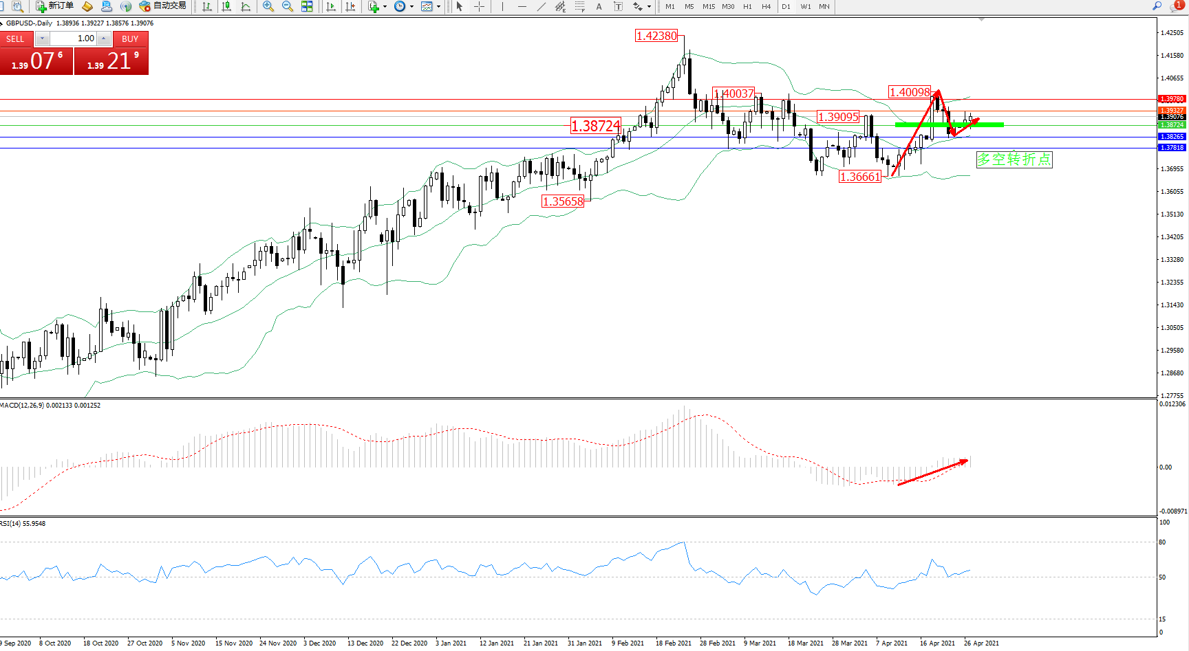 交易策略:1.38724上方看涨,目标1.39327、1.39780